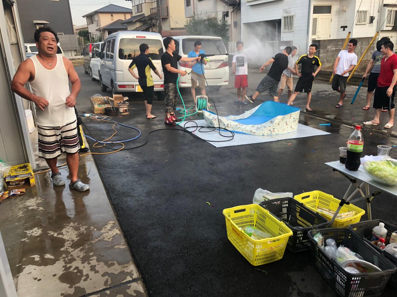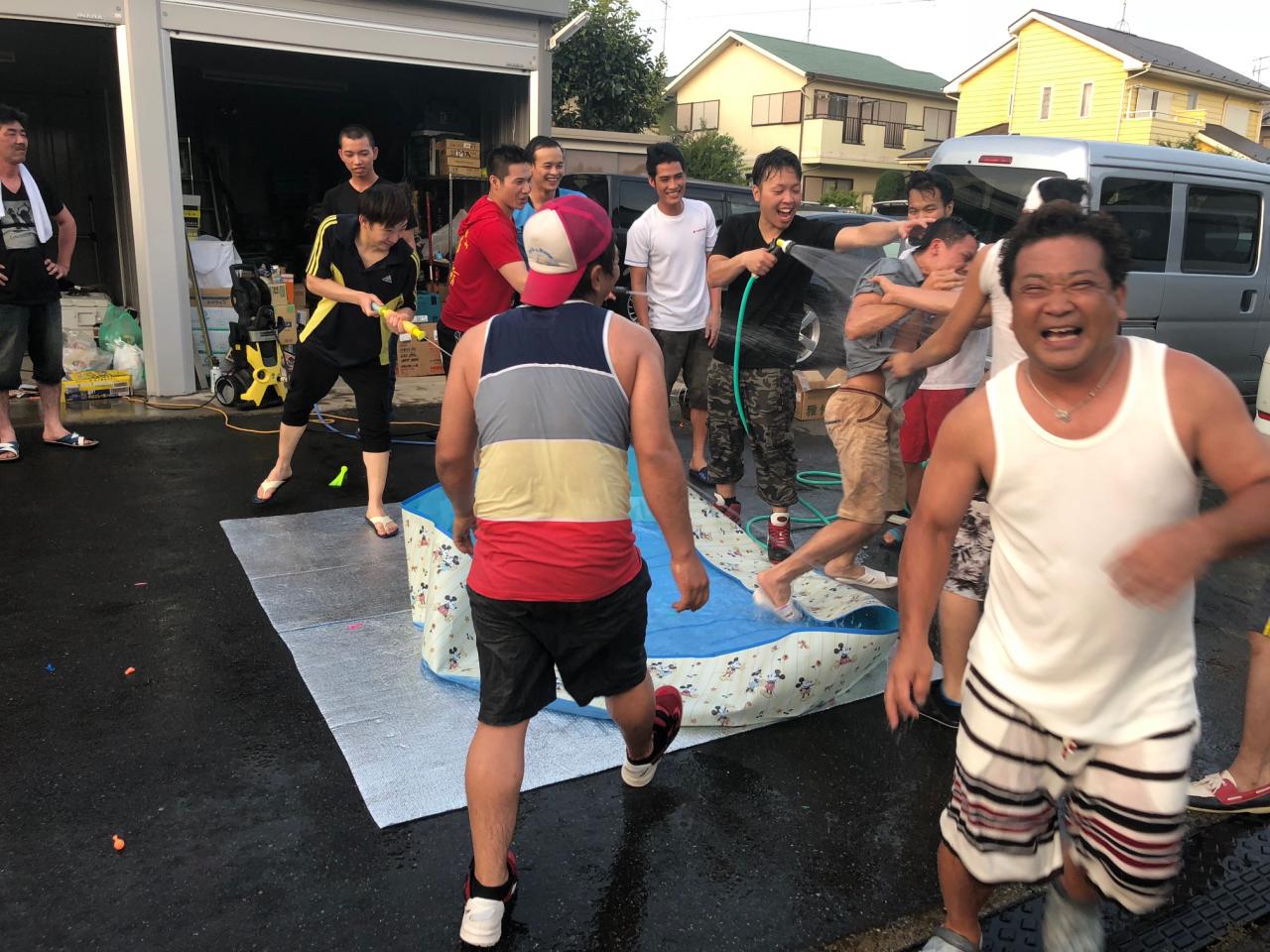 毎年恒例のバーベキューを行いました! 旨い肉食って、酒呑んで暑さを吹き飛ばそう‼︎バーベキューより水遊びがメインになってます( ̄▽ ̄;)社長も含め、社員全員がずぶ濡れ! 1人ずつプールの餌食?になってます。 暑い日は水遊びに限ります( ´∀`)暗くなるまで、呑んで食って水遊びしてました(・ω・)ノ今年の夏も頑張って乗り切ろう(^O^)/