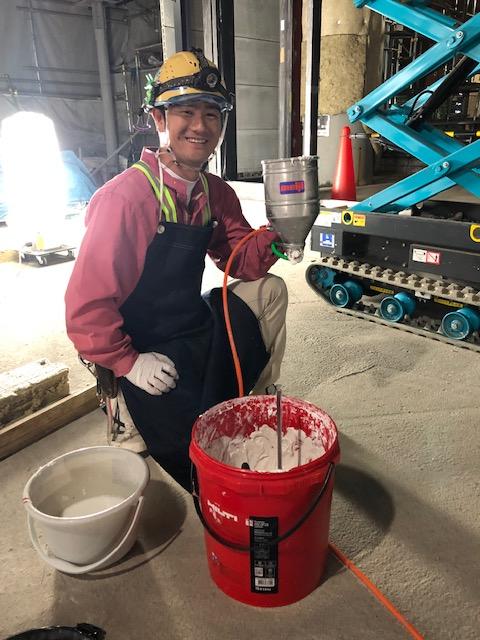 耐火壁の区画処理に使用出来る新しい建材を、試験的に使用してみました! 今までのUタイトの様にコーキングガンで押し出しながら使用するタイプとは異なり、 カップガン&エアーを使って塗装する様に使用する物です! 普段は全く縁のない道具で行う作業なので、 悪戦苦闘しながら施工しました… 作業効率は…慣れれば早くて良いかも! でも最後道具の水洗いが面倒くさいですね。 作業手順含めて改良が必要と感じました!